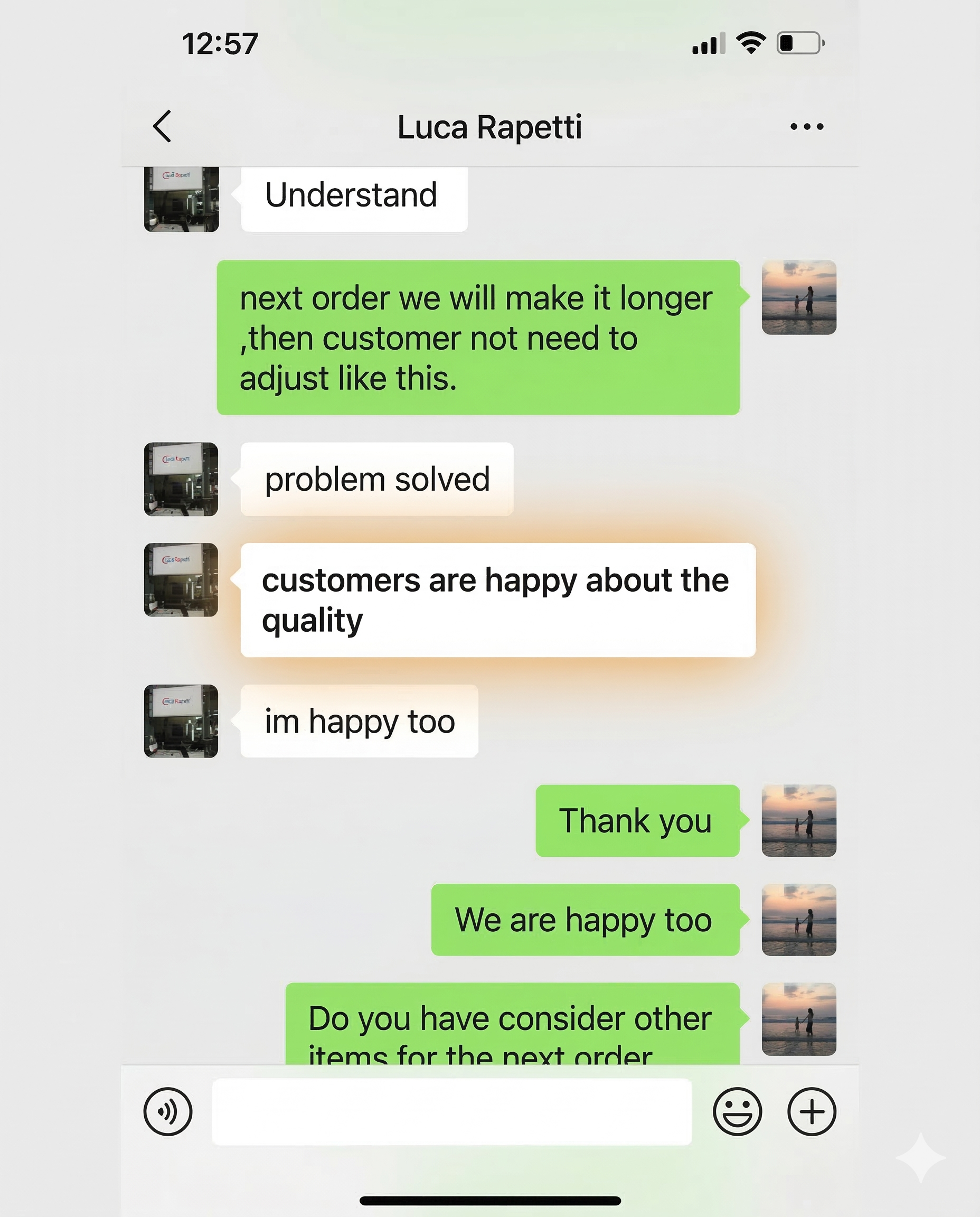 eal conversations that reflect how projects move forward — from product adjustments to repeat orders.